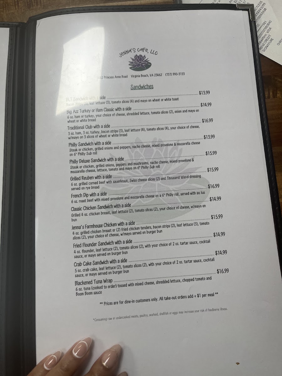 Jenna’s Cafe LLC. Menu